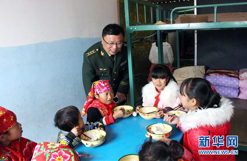 资料图:边防官兵正在了解学生们的食宿情况