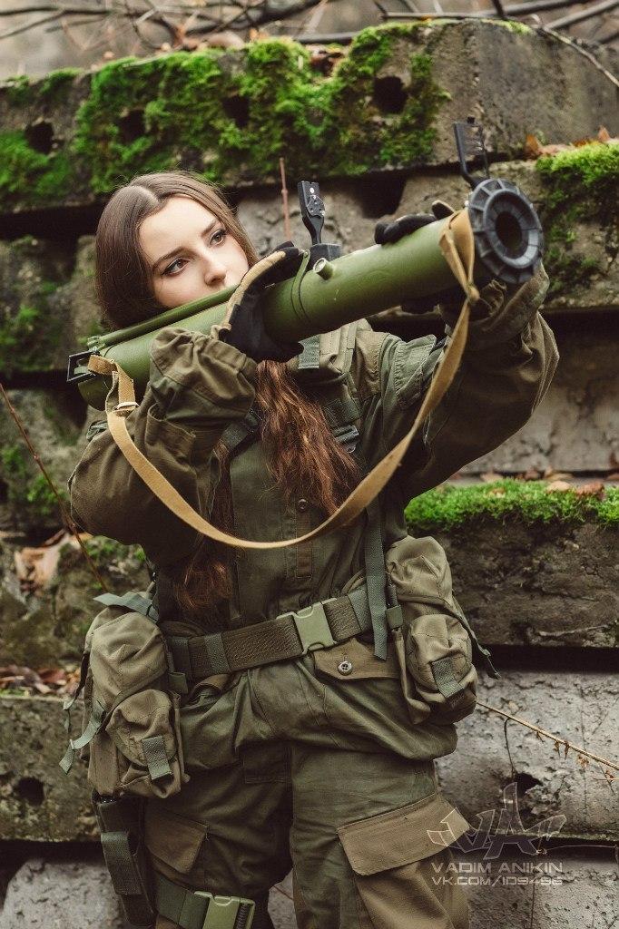 组图:俄清纯小美女走红网络 酷爱枪械与军装