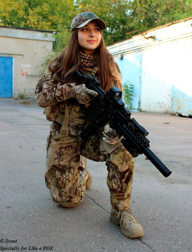 组图:俄清纯小美女走红网络 酷爱枪械与军装