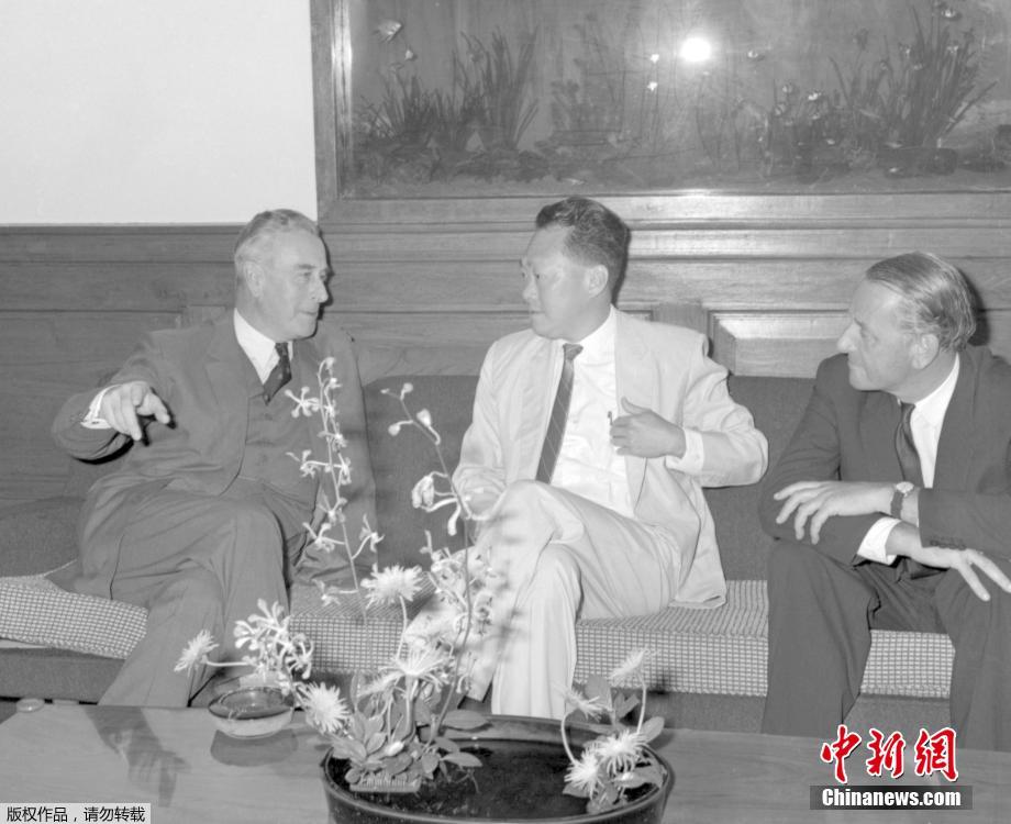 在他的回忆中,李光耀谈及他的曾祖父李沐文早于1862年从广东大埔移居到海峡殖民地的经历,造就了其作为第四代华裔新加坡人的移民背景之一。作为母亲蔡认娘和父亲李进坤的长子,李光耀生于新加坡甘榜爪哇路92号的一座2层高的别墅内。而其祖父李云龙对他施以英语教育的举措,使得他自幼受到了英国文化的强烈影响。图为1965年李光耀在办公室会见来自英国的科学顾问。