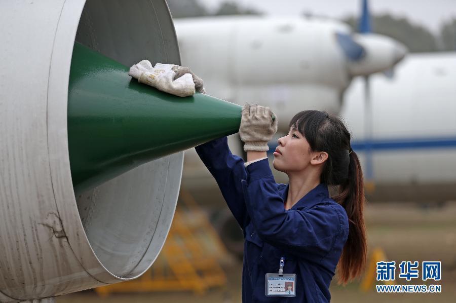 90后四川女孩王润出生于一个飞行世家,爷爷曾是飞机维修技师,父亲曾是空军机务人员。王润从小就心怀蓝天梦,但20岁的她理想却不是当空姐,而是做一名飞机维修人员,为飞行保驾护航。图为王润对一架飞机进行清洁维护。