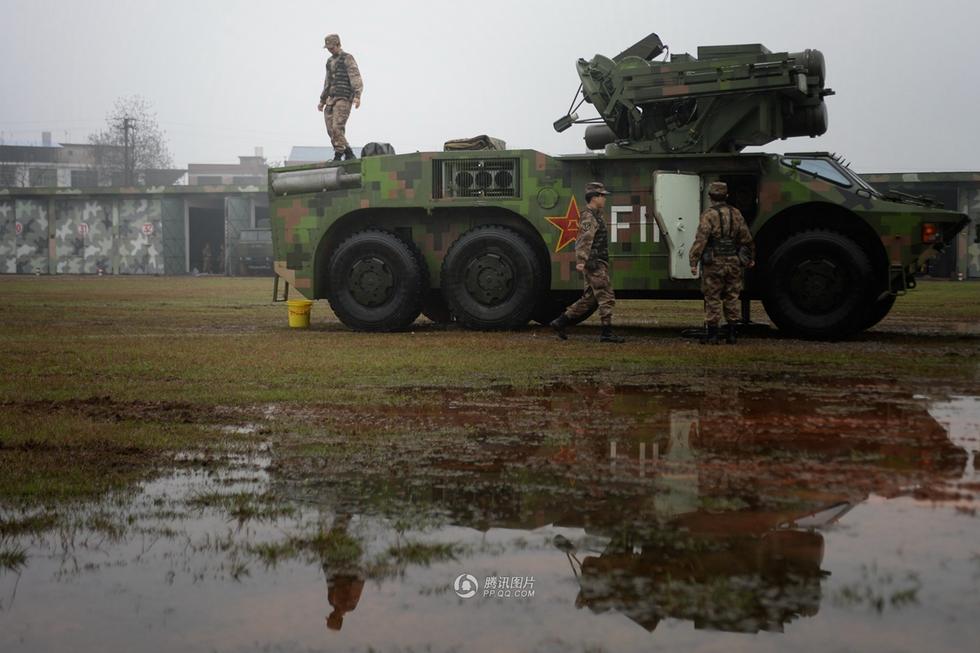 女兵们准备对战车进行清洗。她们经常提着水桶、拿着抹布,从头至尾、从里到外,逐个地方精心擦拭。