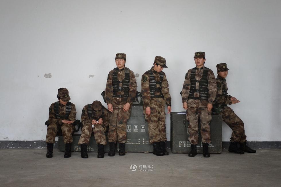 天空下着小雨,在雨中集中训练两个小时,女兵们显得有些疲惫。