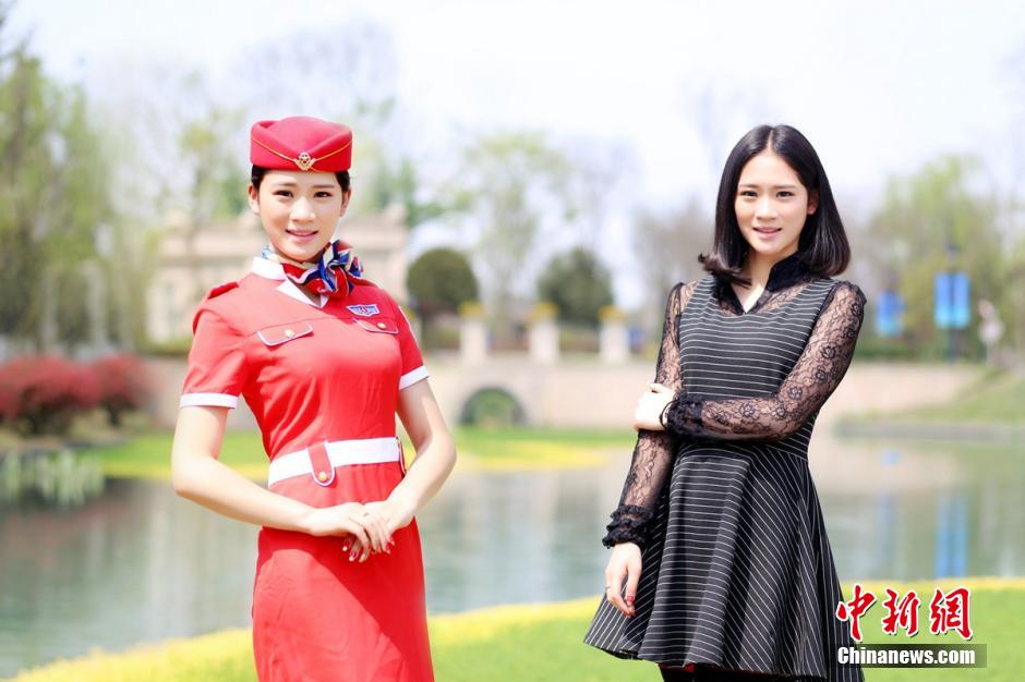 3月25日报道,日前,成都10余位准空姐制服照VS生活照,飞机实训舱、菜花地、桃花树下拍摄了一组制服颜值照及素颜生活照,美丽的准空姐配上高贵的空姐服饰,显得高贵、优雅、成熟干练;亮丽清爽的生活服饰,则显得时尚、活波,青春靓丽,呈现出不一样的美。准空姐制服照VS生活照冷艳绝伦。 钟欣 摄