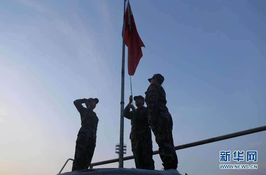 新华网消息:蒙罗维亚时间3月23日,星期一,凌晨,雄壮的国歌声中,五星红旗在利比里亚SKD体育场缓缓升起,中国人民解放军第三批援利医疗队举行每周一次庄重的升旗仪式。