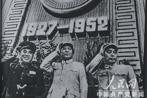 1952年,毛泽东、周恩来、朱德出席八一运动会闭幕式