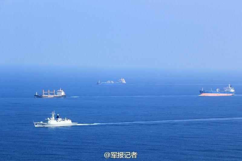 中国海军054A型运城号导弹护卫舰执行护航任务。