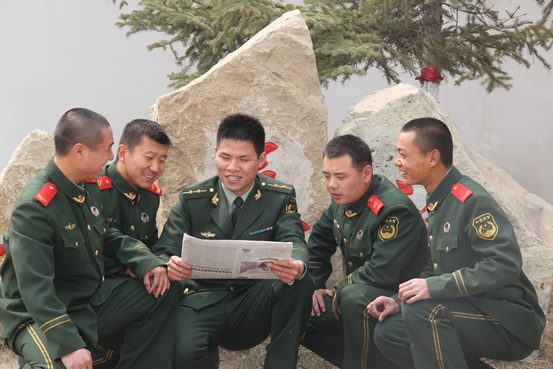 何兵兵与战士们一起学习。