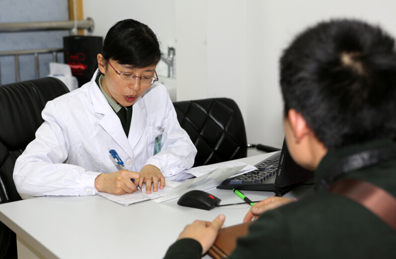 武警四川总队医院感染科主任张晓芳认真记录患者病情。