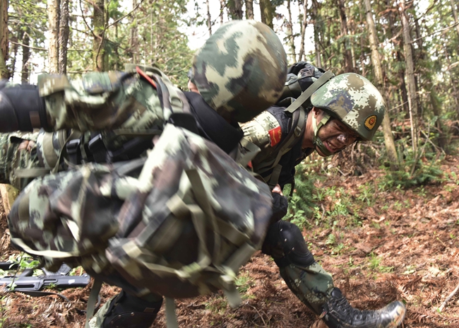 4月7日,武警安徽总队第二支队八中队两名特战队员在进行实战对抗。新华社发(