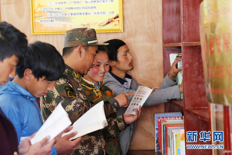 官兵与驻地群众一起选读图书