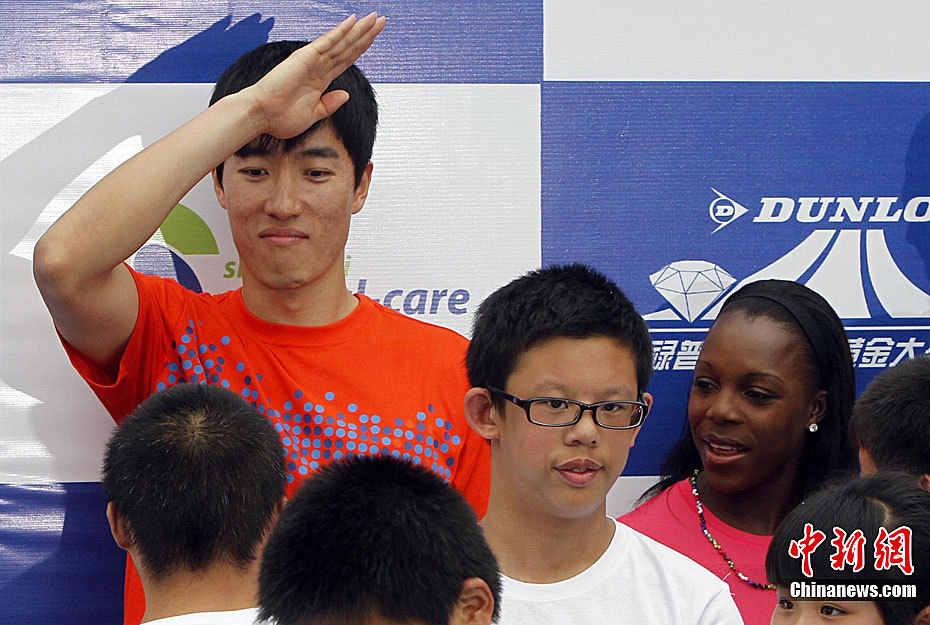 2011年5月14日,在2011上海田径黄金大奖赛正式开赛前夕,刘翔等中外田坛巨星专程来到上海浦东新区辅读学校,与那里的智障儿童亲切交流奉献爱心。 汤彦俊 摄