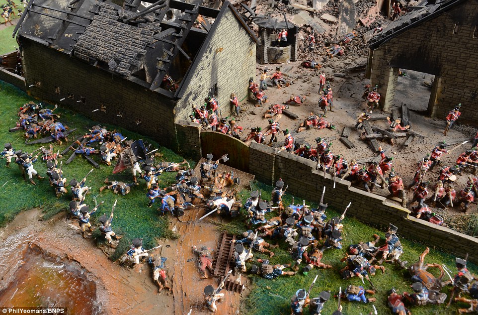 法国军队试图突破Hougoumont城门,这是英国军队的保护墙。(网站截图)