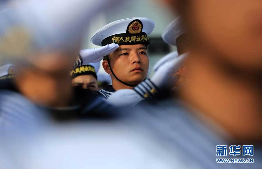 在汽笛声中,官兵行举手礼。代宗锋 摄