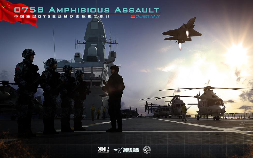 在不久前的兰卡威国际防务展上,我国展出了外贸型两栖攻击舰的模型。作为中国海军装备空白之一,被俗称为“小平顶”的两栖攻击舰的发展近年来备受军迷关注,近日就有网友制作了其设想的中国075B两栖攻击舰概念设计图。(鸣谢网友 西葛西造舰)