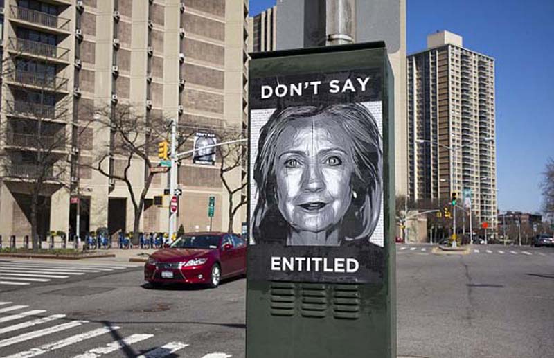 希拉里宣布竞选美国总统 纽约街头出现反对海报(组图)