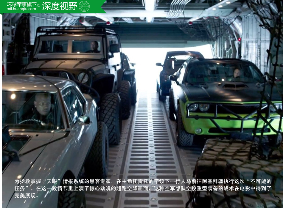 为拯救掌握“天眼”情报系统的黑客专家,在主角托雷托的带领下一行人马前往阿塞拜疆执行这次“不可能的任务”。在这一段情节里上演了惊心动魄的超跑空降画面,这种空军部队空投重型装备的战术在电影中得到了完美展现。