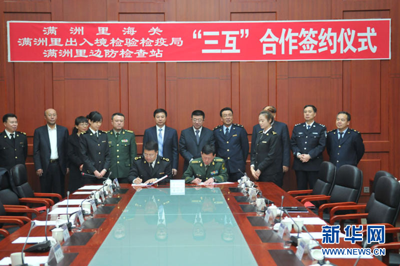 为进一步加强与海关、检验检疫局等口岸联检单位的深层次协作配合,推动落实“信息互换、监管互认、执法互助”重大举措,积极构建大通关管理格局,近日,内蒙古边防总队满洲里边检站与驻地海关、检验检疫局联合举行口岸“三互”合作协议签约仪式。