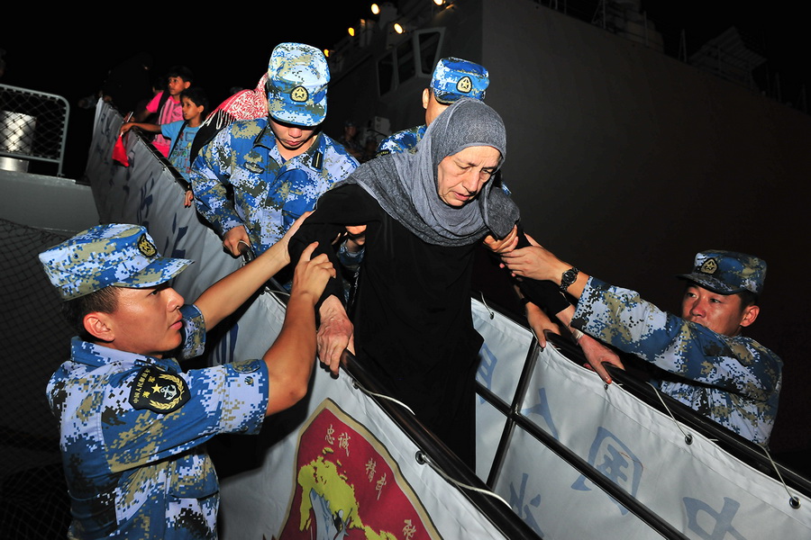 回望这次撤离行动,还有一个亮点被全世界的人们热议:中国海军协助来自15个国家共276名外国公民安全撤离。百年前,中国先贤如此寄语:“中国如果强盛起来,我们不但是要恢复民族的地位,还要对于世界负一个大责任。”而此次中国海军在国际人道主义救援行动中的出色表现,无疑是这份寄语的一个精彩注脚。“谢谢中国!谢谢中国海军!”脱困后外国公民用15种语言表达着同一种感谢,让“达济天下”的中国温度,通过中国海军这张流动的名片再次展现在世人面前。在码头上,面对突然出现枪声,舰员们立即对还没来得及上舰的外国侨民进行贴身护卫,帮助他们提行李、抱孩子,在最短时间内脱离险境;还有的拿出珍藏多时的饮料安慰那些惊魂未定的孩子,有的在地板铺上自己的被子让儿童们玩耍。巴基斯坦工程师卡迪尔说,也门的局势恶化后,到处都是爆炸和枪声,他们一家四口一度以为再也回不了家了,后来中国军舰来了,全家才得以脱身。“多亏中国救了我们!中国给予我们莫大的帮助,我们要用一生回报中国。”他激动地说。 “人是万物的尺度”。临沂舰抵达吉布提港时,吉布提外交部长优素福特地前来迎接。他说:“感谢中国帮助撤离外国侨民,你们的所作所为令人感动!”