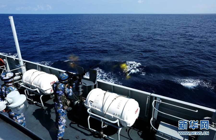 随舰特战队员进行重机枪射击训练。曾涛 摄