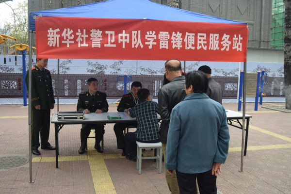 新华网消息:4月11日下午,新华社警卫连全体官兵在中队党支部的带领组织下,开展“学雷锋”便民服务活动。