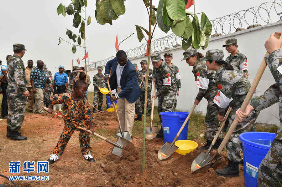埃博拉患儿罗伯特康复出院,与首批援利医疗队员一起种下象征和平与友谊的非洲橄榄树。 姜恒摄