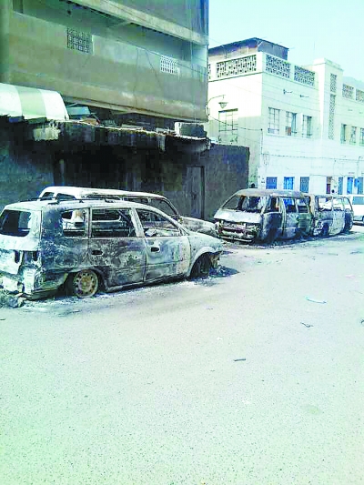 坐在记者对面,甄良涛回忆起那天早上的情形,仍觉得有些毛骨悚然:“由于几日以来的战斗,我已经整整5天没有出门。从宾馆到港口只有5公里,开车只需要十几分钟车程,但是路上的景象让人很震惊。路上有烧得只剩下黑炭似的架子,依稀能辨认出原来是一辆军车,路上散落着各式各样的子弹壳子和炮弹壳子,还有装军火的空木箱,另外还有大小的石头散落在路上,显然是附近山上爆炸溅出的石头。”