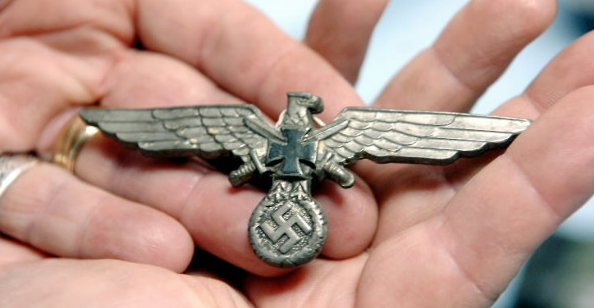 令人意外的是,波兰人在剖开鱼腹后发现德国纳粹时期的金属材质的军章。