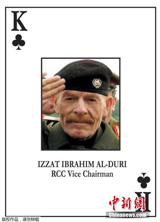 杜里曾在萨达姆·侯赛因领导的伊拉克政府担任副总统。在2003年美国领导的联军入侵伊拉克后,他在美国通缉伊拉克政府官员的名单上名列第六。杜里在55张代表了55名在逃犯的扑克牌中被标为“梅花K”,并一直是全球通缉犯之一,其人头价值1千万美金。(资料图)