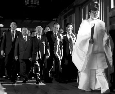 靖国神社位于东京千代田区,神社内供奉着包括东条英机在内的14名二战甲级战犯。长期以来,日本部分政客坚持参拜靖国神社,导致日本与中国、韩国等亚洲国家关系恶化。2013年12月,安倍在执政一周年之际悍然参拜靖国神社,引发中国、韩国等亚洲邻国强烈抗议,就连盟友美国也表达不满。