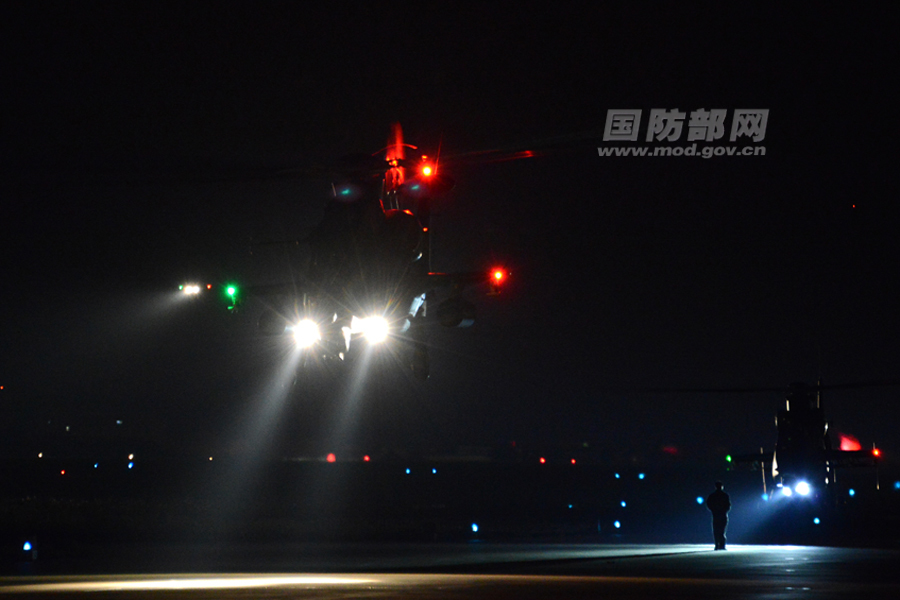 4月21日,南京军区某陆航团组织部队进行夜间飞行训练,锤炼飞行员夜战本领。肖庆明摄 来源:国防部网