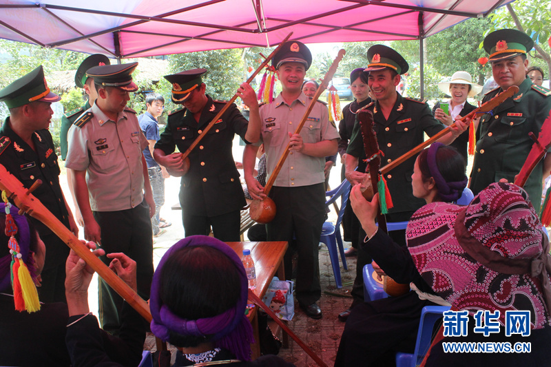 中越边防官兵共同体验越南独弦匏琴。蒙建广 摄