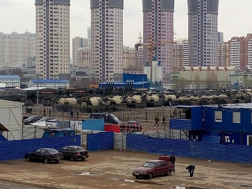 抵达莫斯科市区霍登斯基场地的俄军各型装备。