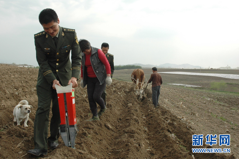 官兵帮助缺少劳动力的家庭春耕