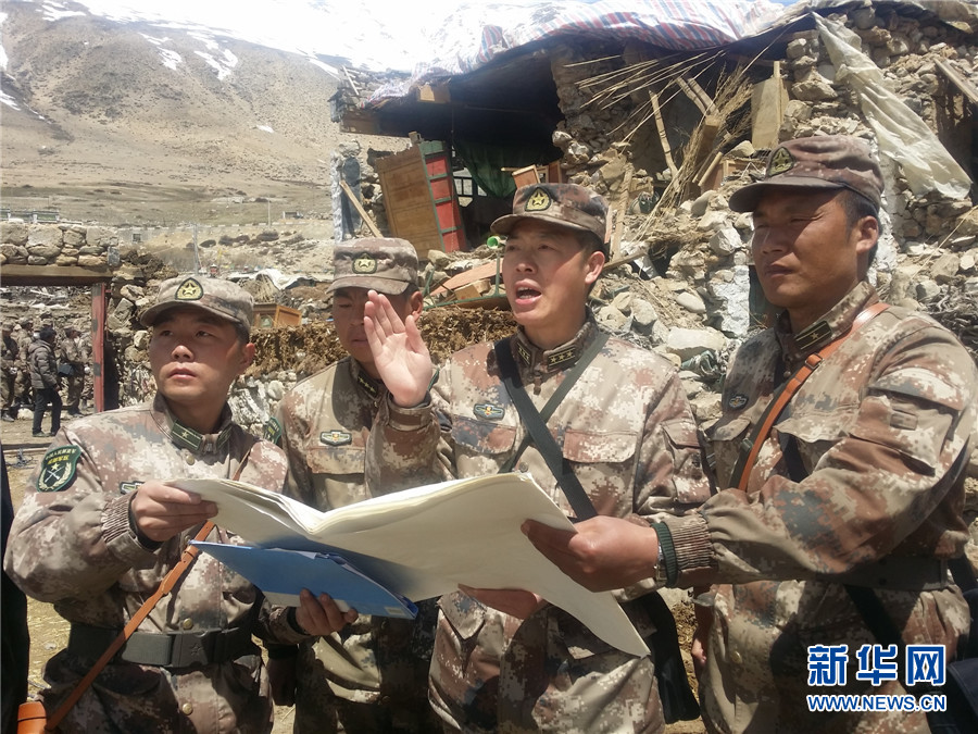 新华网消息(黎远华 记者陈怀祥)尼泊尔强震波及西藏边境部分地区后,日喀则军分区某团已先后派出4批抗震救灾分队火速抵达西藏重灾区——聂拉木县展开救援。记者在现场看到,该团官兵在团政委李亚军的带领下,每天多路向各村派出兵员搜索被埋人员,全力营救受伤群众,劝说群众转移到安全区域,帮助群众拆除危房等。