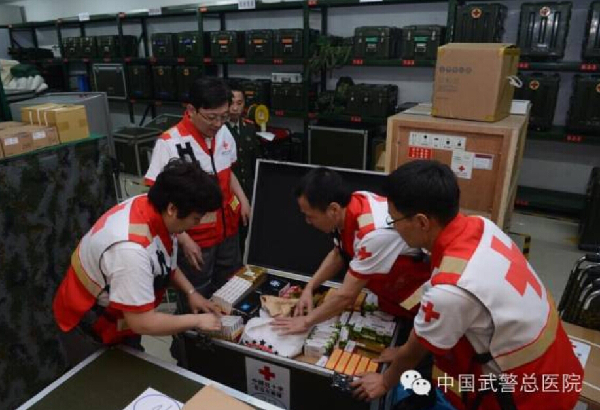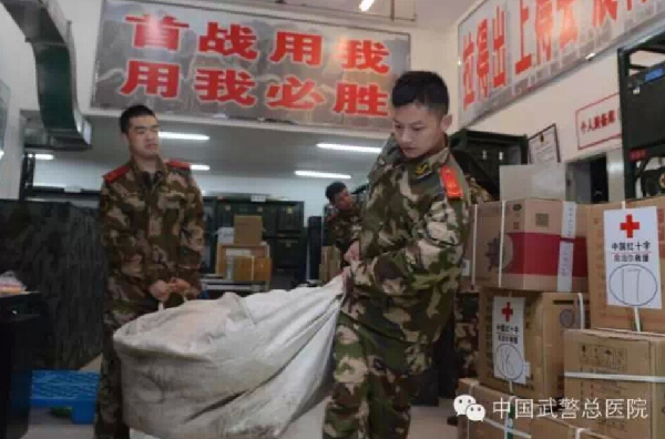 4月29日清晨6:00,中国红十字医疗救援队武警总医院第二批10名医疗队员最后一次清点物资药品,装箱完毕送往首都机场。30日,队员们将携带价值500多万元的药品、器材、耗材、设备、帐篷等物资,飞赴尼泊尔执行医疗救援任务。从25日接到命令开始24小时战备至今,队员们始终在紧张地做着各项准备,搜集前线情况,调整物资设备。昨日深夜,医疗队队长陈金宏召集队员们开会,根据尼灾区目前可能出现的腹泻、麻疹等情况,制定隔离防控治疗措施。队员们已经做好了出发前的一切准备,随时等待出征。