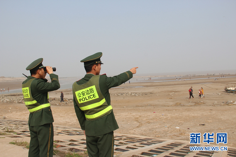 官兵观察“月亮湾”游客情况