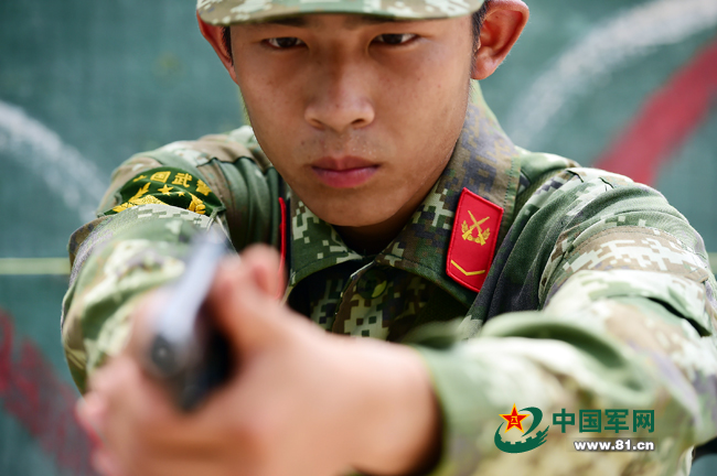 “这是按照打仗的标准着装,这更加适应战场需要!”一等功臣、武警广东边防总队机动支队四级警士长李文介绍,新式领章可以直接粘贴,可起到快速摘除或更换、便于作战和训练隐藏需要的作用。