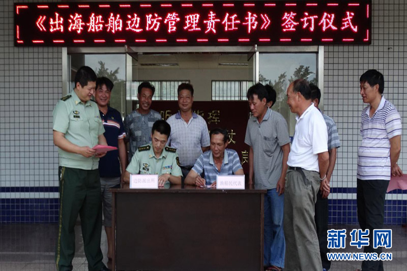 边防官兵与渔船民签订责任书