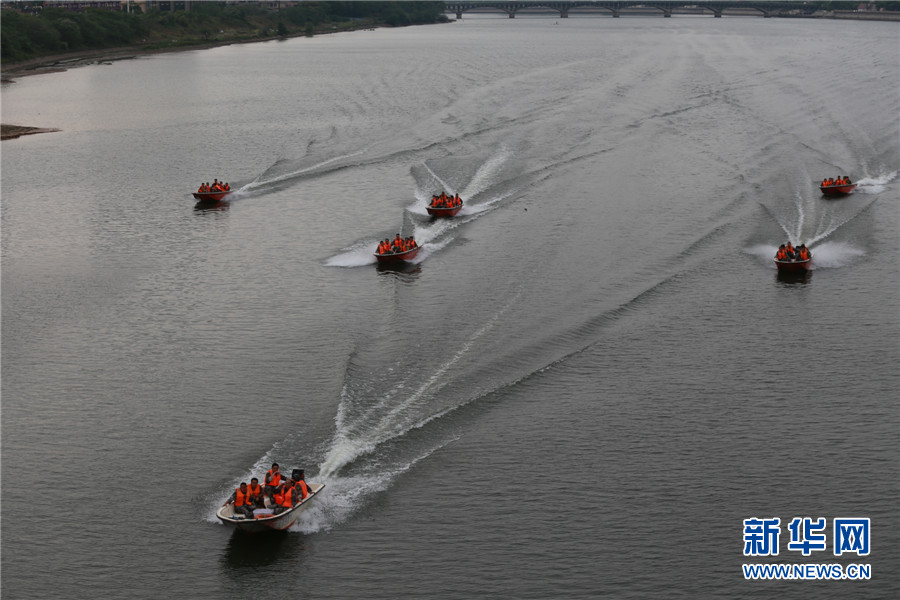 新华网消息:为全面提升民兵防汛抗洪和提高水上应急救援能力,4月26日起,上饶市信州区人武部组织42名民兵舟艇分队骨干进行为期一周的水上应急救援集训演练,演练内容包括冲锋舟驾驶、水上打捞与救援等训练项目。(吴晓敏、王政摄影报道)