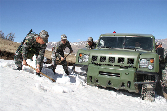 新疆塔城军分区一线连队驻守在大山深处,由于巡逻区域海拔较高,昼夜温差较大,炎炎烈日都难消山上的常年积雪。为确保边境安全,阿吾斯奇边防连官兵坚持“头顶烈日脚踏雪”,到点到位执勤,每天巡逻在海拔3000多米的中哈边境萨吾尔山上。