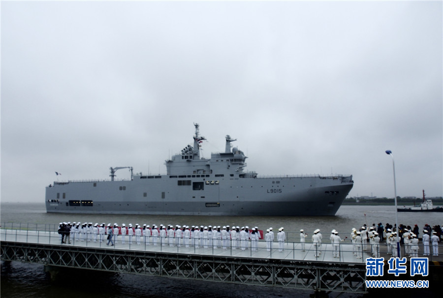 5月9日,法国海军“迪克斯莫德”号投送指挥舰缓缓驶抵上海吴淞军港。新华社发(江山 摄)