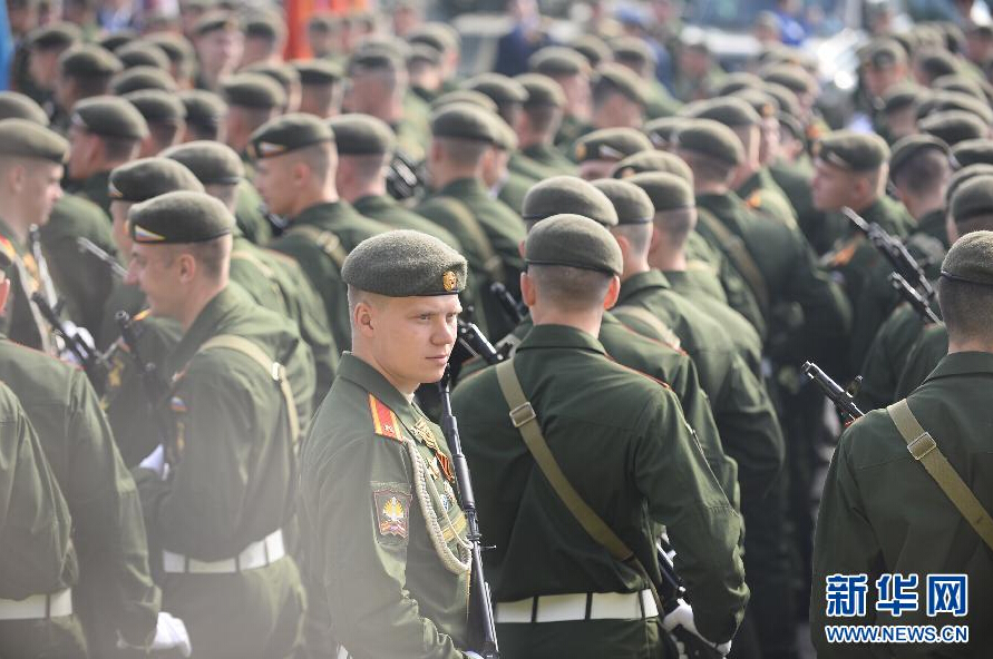 5月9日,在俄罗斯首都莫斯科红场,受阅部队等待入场。 当日,俄罗斯在莫斯科红场举行纪念卫国战争胜利70周年阅兵式。 新华社记者贾宇辰摄