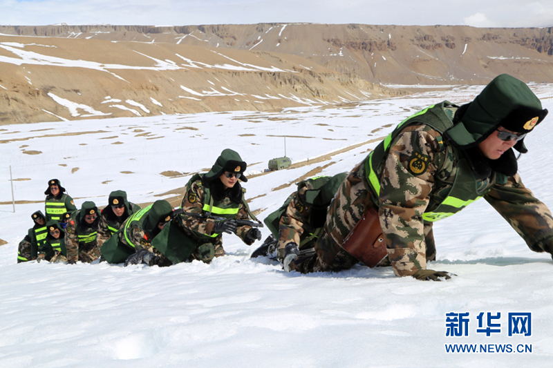 组图:西藏阿里边防官兵踏雪巡逻 饮雪止渴
