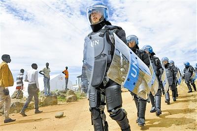 5月10日,南苏丹首都朱巴一难民营发生大规模械斗事件。应联合国南苏丹特派团调遣,中国赴南苏丹维和步兵营派出一支由32人组成的防暴队赶赴事发地点,实施警戒和隔离,顺利完成首次实战防暴任务。孙江超摄