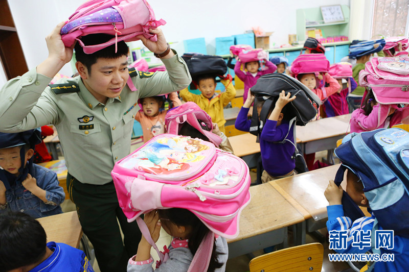 边防警官贾宸瑞向学生传授地震逃生技能