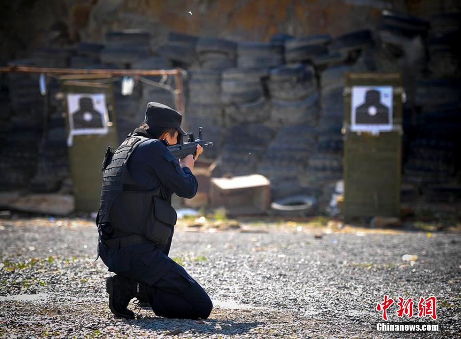 乌鲁木齐特警射击考核 女队员手端步枪认真开火