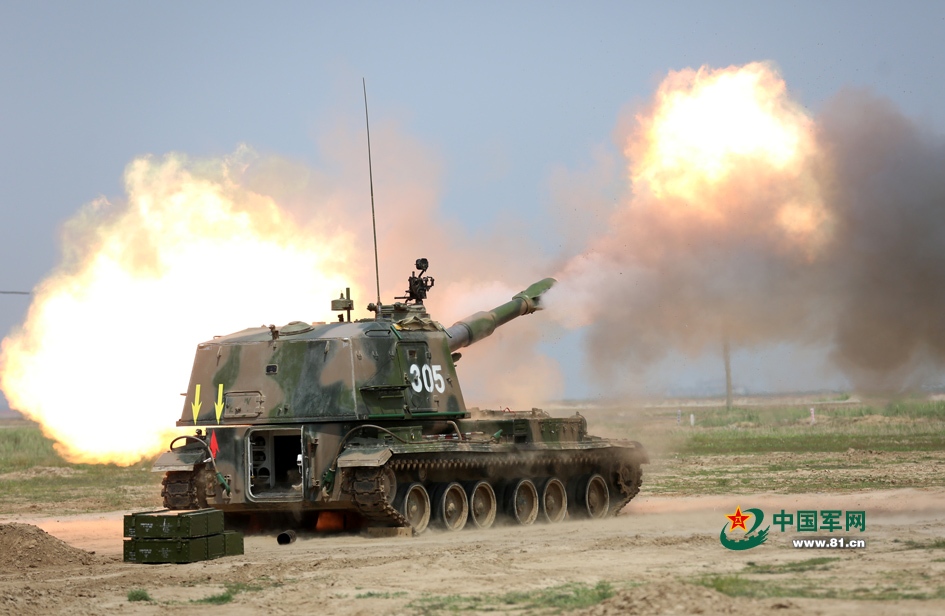 解放军多款自行火炮实弹射击 后门大开