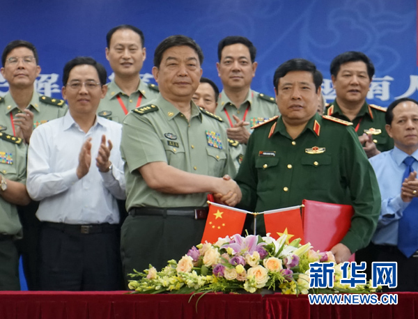 两国国防部长17日还率团前往解放军驻河口边防营综合训练场,观摩了射击、刺杀操、军犬破障等训练科目,并共同见证了这个边防营与越南老街国际口岸边防屯结为友好营屯的备忘录签署仪式。