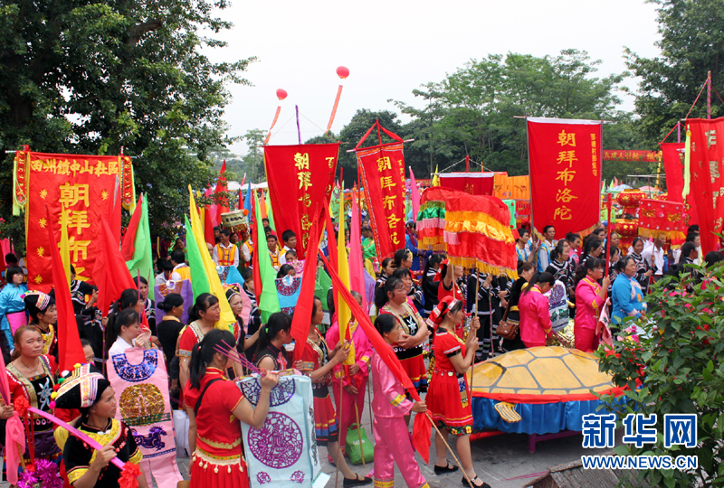 这是农历三月三,广西宁明县峙浪乡长桥村歌坡会的现场,当地演员正在台上演绎祖辈流传下来的青年男女利用山歌相亲的场景。